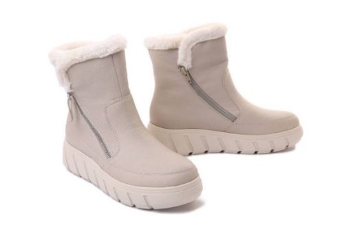 Botki damskie. Ocieplone futerkiem. Wkładka MemoSoft. Podwójne zapięcie, zamek plus sznurowadła. Wygodny koturn, elastyczna podeszwa.