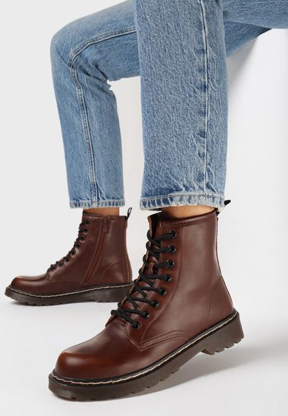 Brązowe Botki Workery z Sznurowaniem Eroania