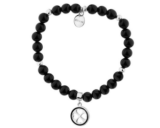 Bransoletka z mosiądzu pozłacana z agatami i emalią – koniczyna