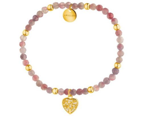 Bransoletka z mosiądzu pozłacana z turmalinami i cyrkoniami – serce, drzewko