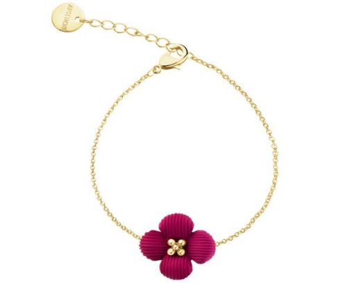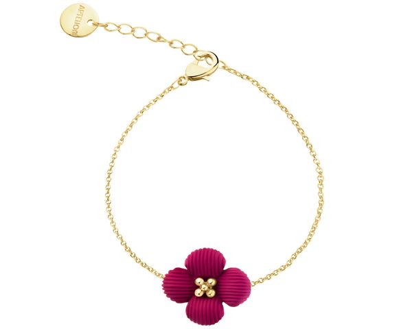 Bransoletka z mosiądzu pozłacana – kwiat – AR537-0159. Mosiądz pozłacany, cynk, poliuretan