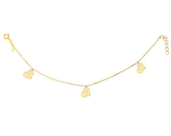 Złota bransoletka, ankier – serca – AP531-3787. Żółte złoto