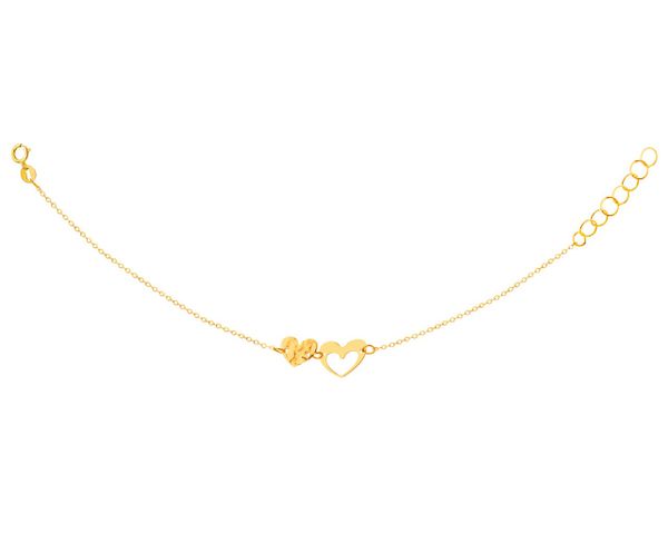 Złota bransoletka, ankier – serca – AP532-4104. Żółte złoto