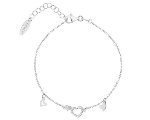 Bransoletka srebrna z cyrkoniami – serca – AP536-8862. Srebro rodowane