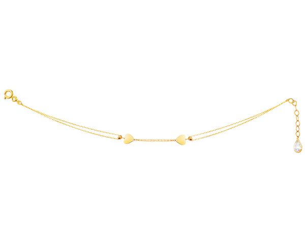Złota bransoletka z cyrkonią, ankier- serca – AP532-1083. Żółte złoto