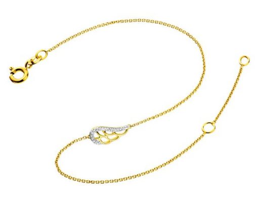 Bransoletka z żółtego złota z diamentami – skrzydło – 0,01 ct – próba 375