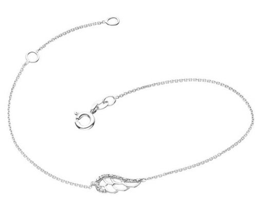 Bransoletka z białego złota z diamentami – skrzydło – 0,01 ct – próba 375