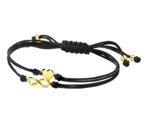 Bransoletka z elementami żółtego złota i diamentem – nieskończoność, serce – 0,004 ct – próba 375
