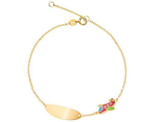 Złota bransoletka z emalią i blaszką, ankier – samolot – AP536-7526. Żółte złoto