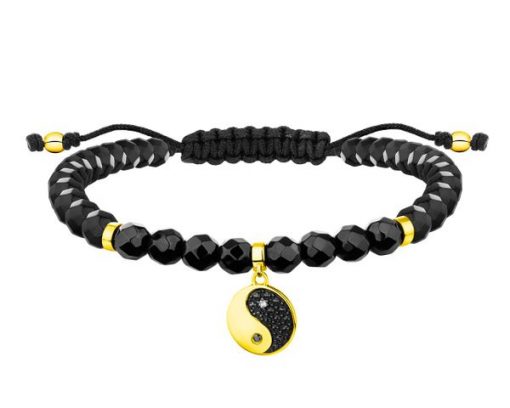 Bransoletka z diamentami, agatami i elementami żółtego złota – yin yang – próba 375 – 220.344/4. Żółte złoto rutenowane