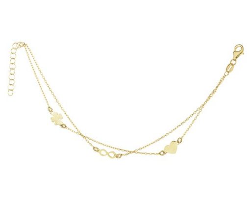 Bransoletka srebrna – serce, nieskończoność, koniczyna – AP528-8312. Srebro pozłacane