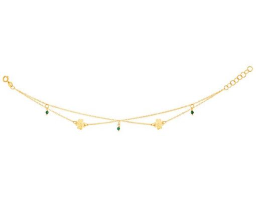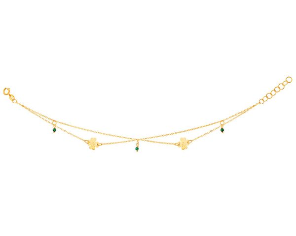 Złota bransoletka ze szkłem , ankier – koniczyny