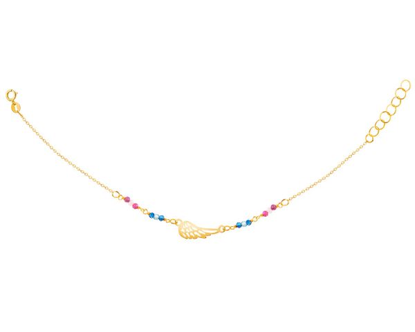 Złota bransoletka ze szkłem, ankier – skrzydło – AP531-2386. Żółte złoto