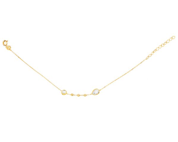 Złota bransoletka z cyrkoniami, ankier – kulki