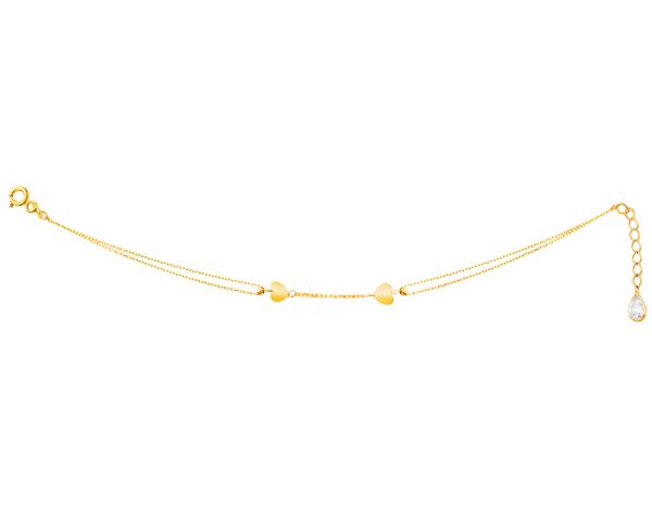 Złota bransoletka z cyrkonią, ankier – serca