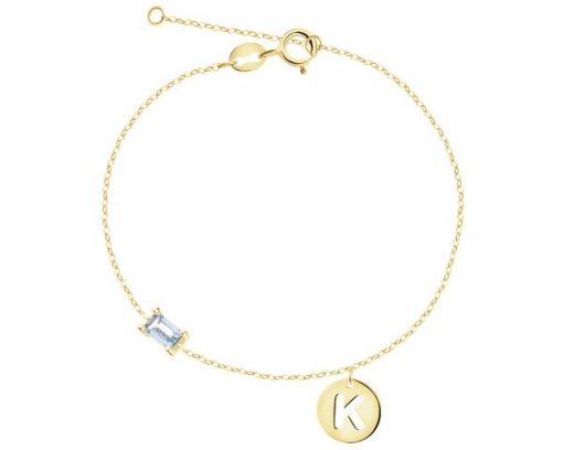Złota bransoletka, kamień nano – litera K – AP539-1612. Żółte złoto