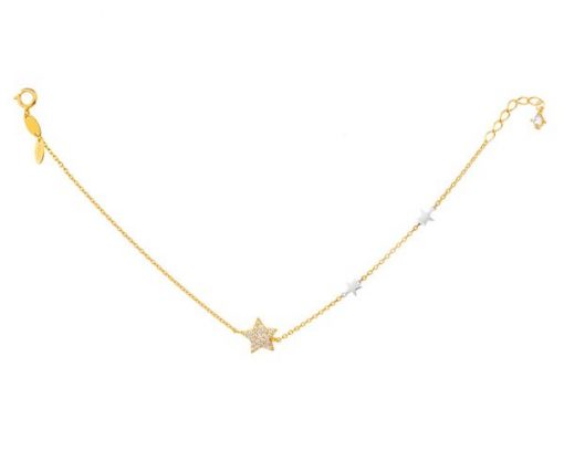 Złota bransoletka z cyrkoniami – gwiazdy – AP523-3880. Żółte złoto i białe złoto rodowane