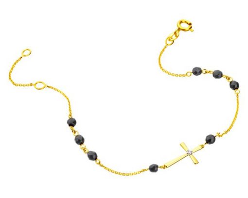 Bransoletka z żółtego złota z diamentem i agatami – krzyż – próba 375 – 110.321. Żółte złoto rodowane