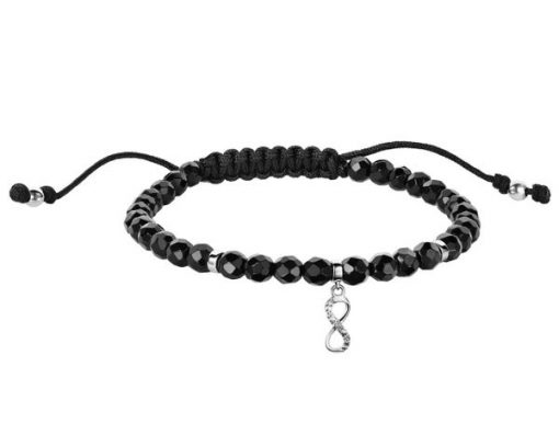 Bransoletka z diamentem, agatami i elementami białego złota – nieskończoność – próba 585 – 220.590/4. Białe złoto rodowane