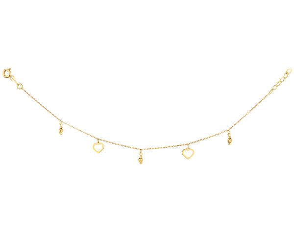 Złota bransoletka, ankier – serce, kulki – AP527-8380. Żółte złoto