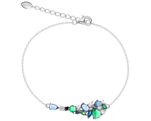 Bransoletka srebrna z cyrkoniami i szlifowanym szkłem – AP537-5468. Srebro rodowane