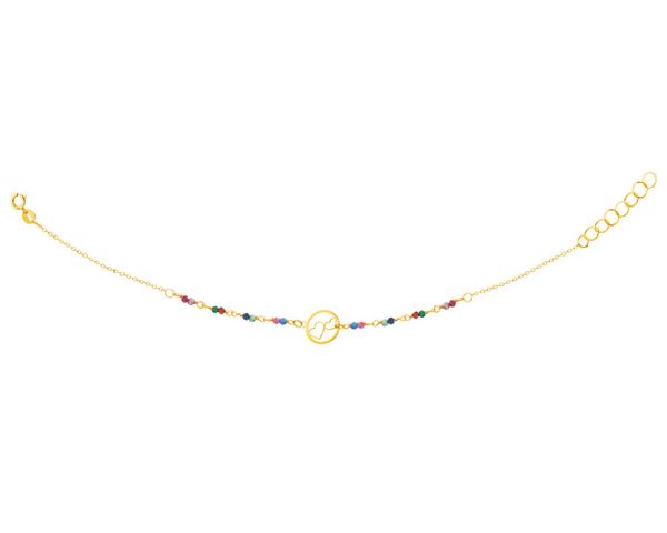 Złota bransoletka ze szkłem, ankier – koło, serca – AP532-5426. Żółte złoto