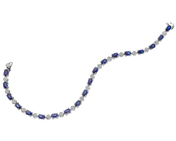 Bransoletka z białego złota z diamentami i szafirami – 18 cm – próba 585 – 103.752. Białe złoto rodowane