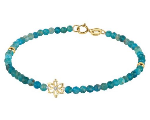 Bransoletka z diamentem, kwarcytami i elementami żółtego złota – kwiat – 18 cm – próba 375