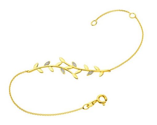 Bransoletka z żółtego złota z diamentami – liście – 0,006 ct – próba 375