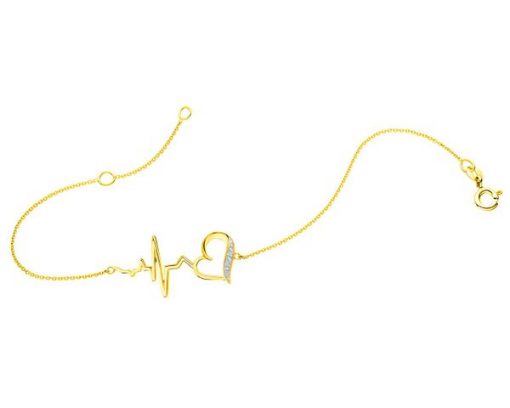 Bransoletka z żółtego złota z diamentami – serce, EKG serca – 0,01 ct – próba 375