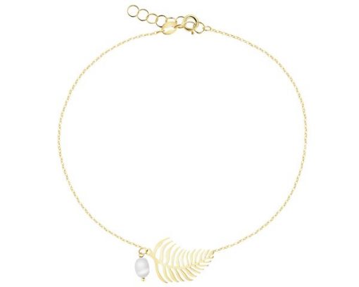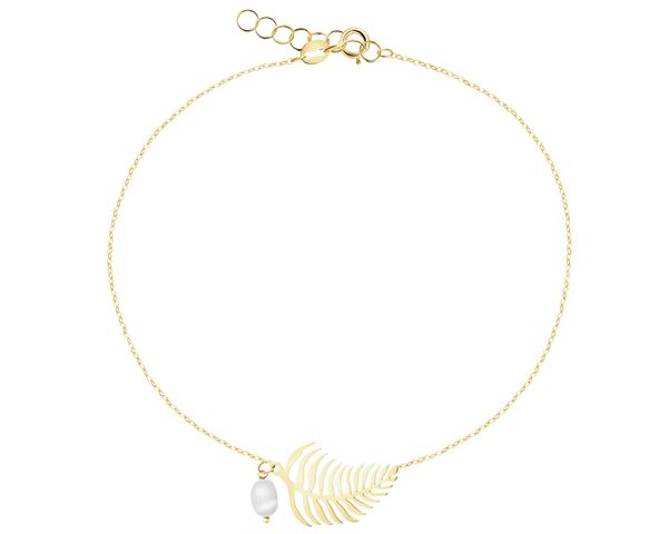 Złota bransoletka z perłą – liść – AP539-7621. Żółte złoto