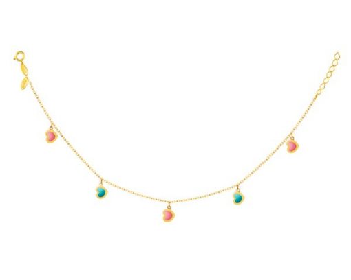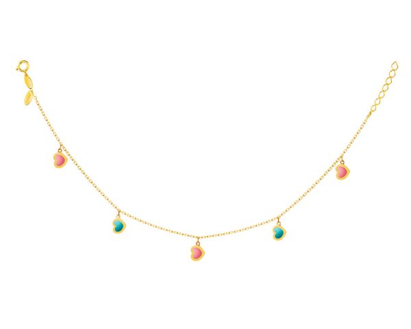 Złota bransoletka z emalią – serca – AP533-2879. Żółte złoto