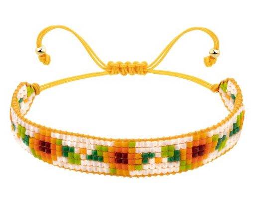 Bransoletka z elementami z żółtego złota i koralikami – kwiaty