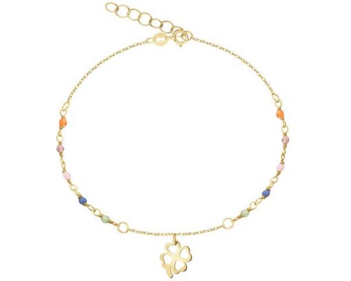 Złota bransoletka ze szkłem szlifowanym, ankier – koniczyna – AP537-9139. Żółte złoto