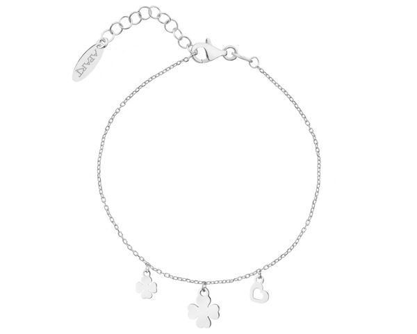 Bransoletka srebrna – koniczyny, serce – AP540-8249. Srebro rodowane