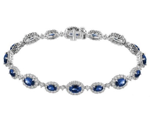 Bransoletka z białego złota z brylantami i szafirami – próba 585 – 109.366. Białe złoto rodowane