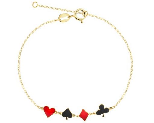 Złota bransoletka z emalią – kier, pik, karo, trefl