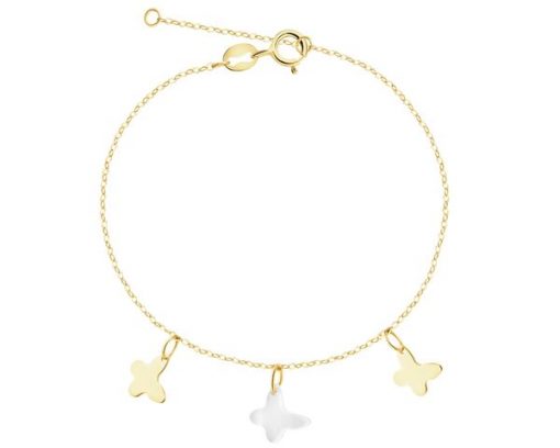 Złota bransoletka z masą perłową – motyle – AP542-0695. Żółte złoto