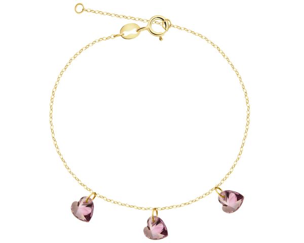Złota bransoletka z cyrkoniami – serca – AP541-3420. Żółte złoto