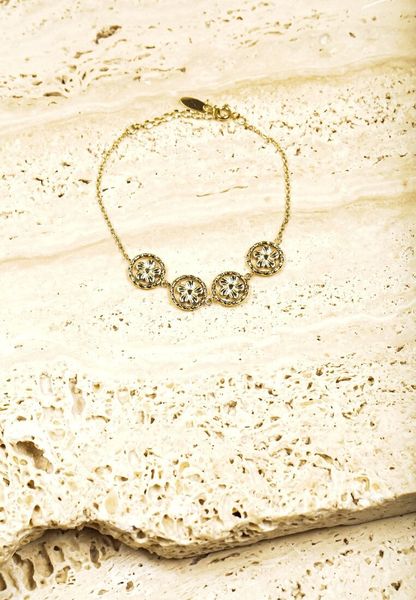 Złota Cienka Bransoletka z Okrągłymi Zawieszkami z Kwiatkami Finorelia