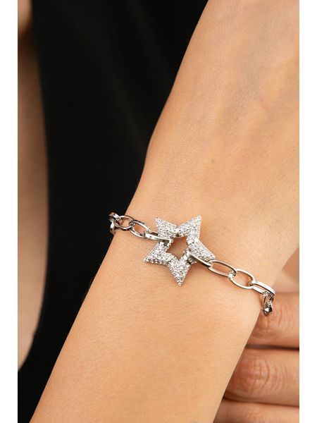 – materiał: metal- powłoka: srebro- typ łańcuszka: ankier- zapięcie: karabińczyk- element ozdobny: gwiazda- rodzaj kamienia: cyrkonia- kolor kamienia: bezbarwny- opakowanie: pudełkoWskazówka: Zdjęcie produktu w powiększeniu.