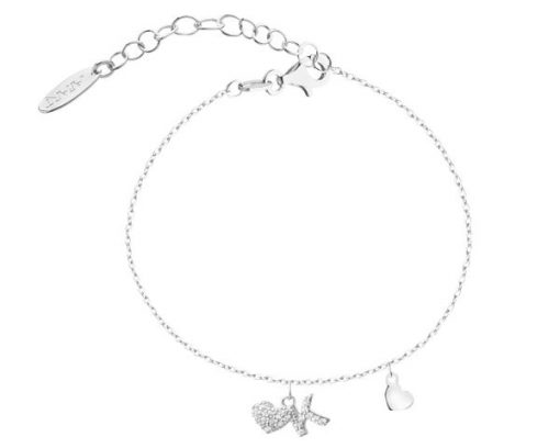 Bransoletka srebrna z cyrkonami – litera K, serca