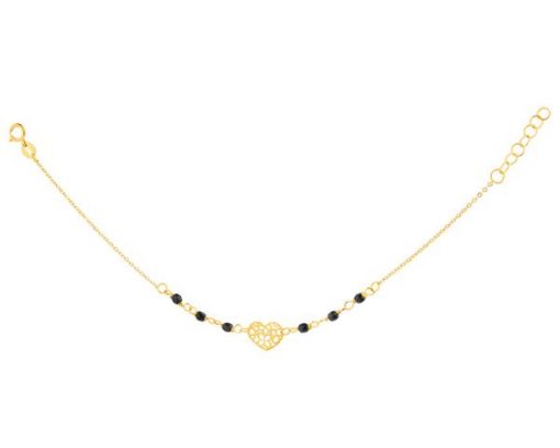 Złota bransoletka z cyrkoniami, ankier – serca