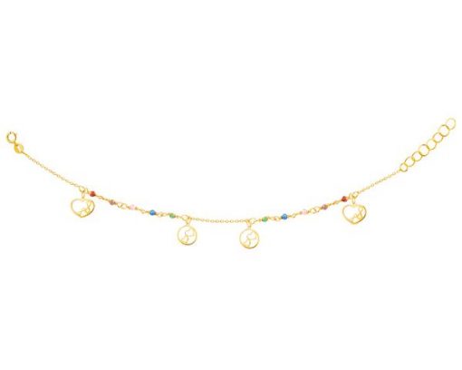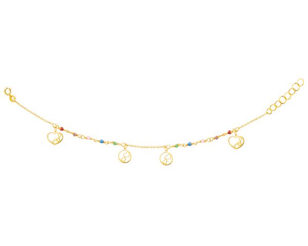 Złota bransoletka ze szkłem, ankier – serca, nieskończoności – AP533-0287. Żółte złoto