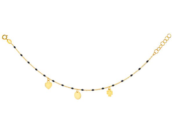 Złota bransoletka z emalią – serce, koło, koniczyna – AP526-0072. Żółte złoto