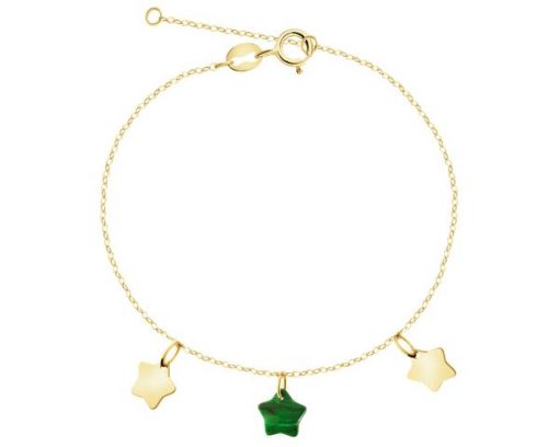 Złota bransoletka z malachitem syntetycznym – gwiazdy – AP541-8833. Żółte złoto