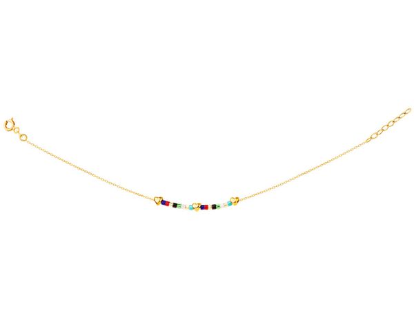 Złota bransoletka ze szkłem, ankier – serca – AP530-4474. Żółte złoto