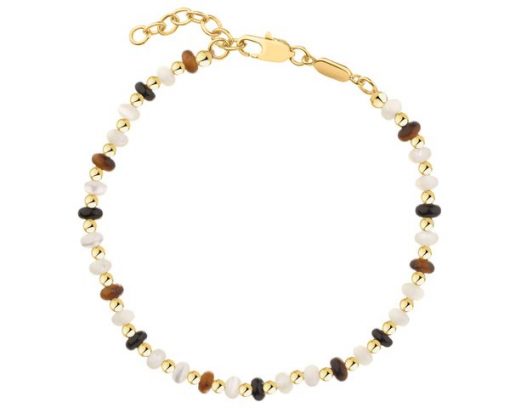 Bransoletka z mosiądzu pozłacana z agatami, masą perłową i tygrysim okiem – AR541-2632. Mosiądz pozłacany