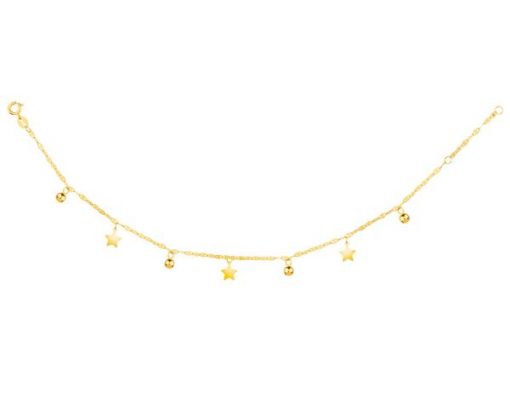 Złota bransoletka, skręcone blaszki – kulki, gwiazdy – AP531-6999. Żółte złoto