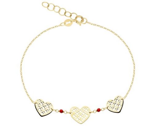 Złota bransoletka z cyrkoniami – serca – AP541-5631. Żółte złoto